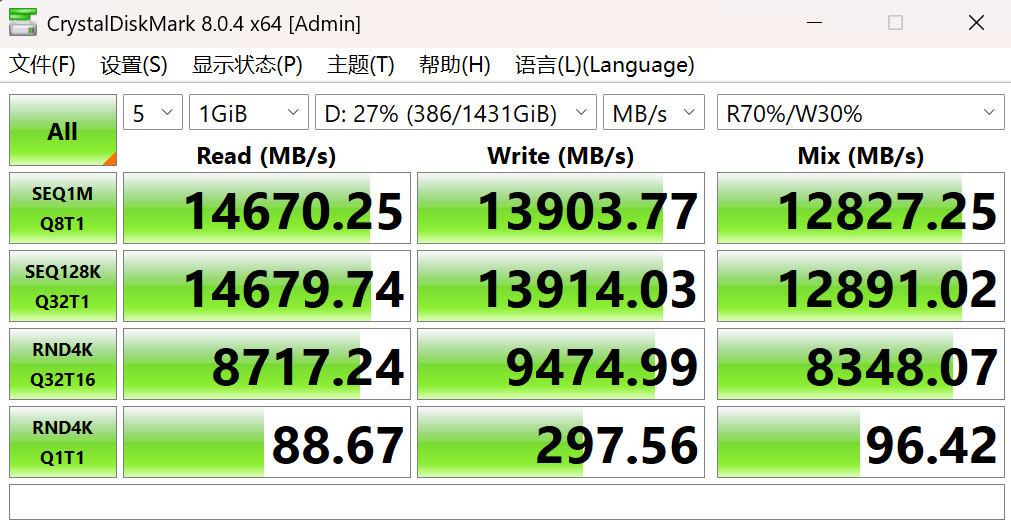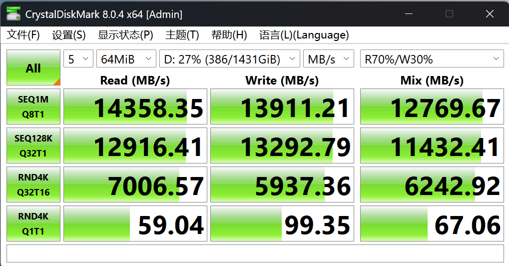 于是乎测试了下硬盘速度,直通的TiPro9000固态硬盘性能直接砍半!