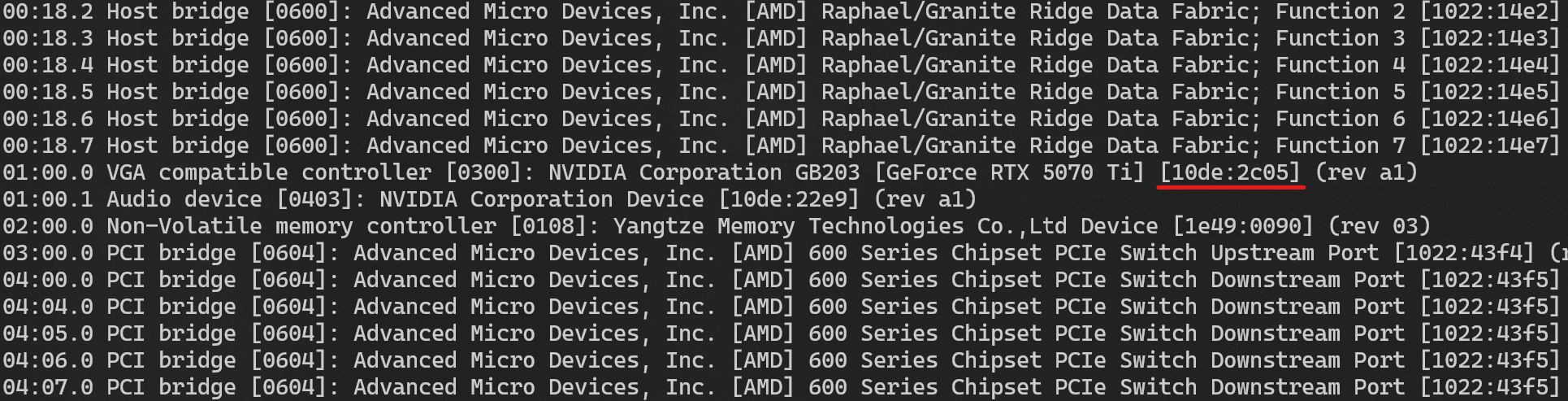如上图5070Ti显卡的设备ID就是中括号的字符串。